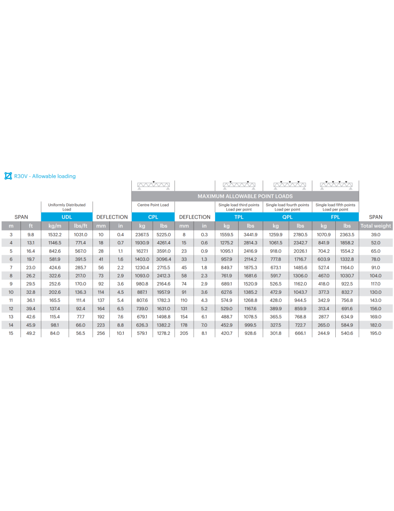 The R30V series truss is a high preformance truss which is constructed of mainchords (50x5 mm) and diagonal members in the sides (25x3 mm). On the top and bottom surface it has straight members ( 25x3 mm top and 48x3 mm bottom). The truss modules makes use of the heavy duty CCS7 coupling system. Due to the straight members in the bottom side, it is possible to suspend loads in the centerline of the truss.