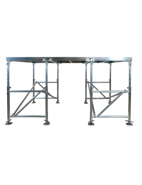 By using 4-way adapters, not every deck requires its own support frame. This allows you to create free corridors under the stage. Useful as storage space for empties, the ideal location for dimmer city or other uses.