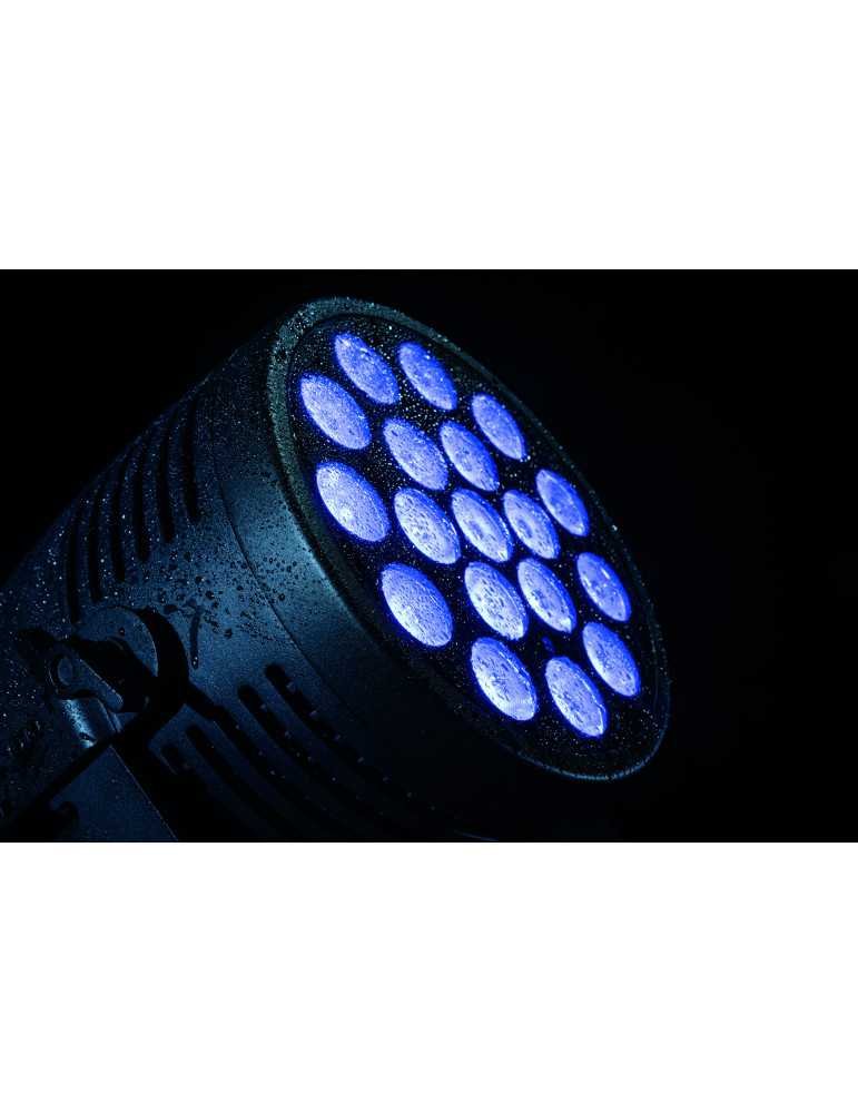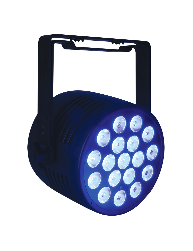 18 x 20 W RGBWA + UV (full colour) LEDs, delivering remarkable luminous intensity.