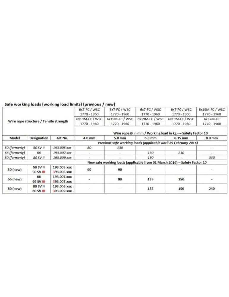 TYPE 80 - Pour câble de 8 mm Charge 240 Kg et Câble 6,35 mm, 1/4' Charge 150Kg et câble de 6 mm Charge 135 Kg