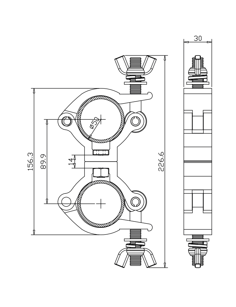 Double-colliers alu ø 48 à 51 mm charge SWL : 300 kg.