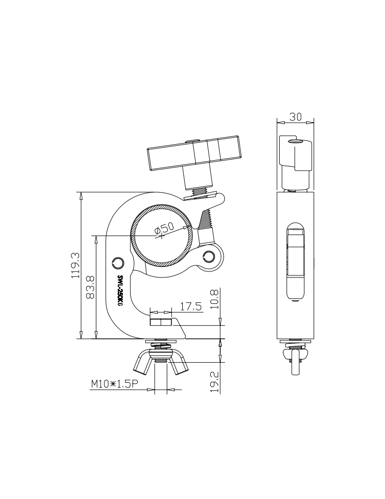 - Boulon de fermeture : M10 (papillon)