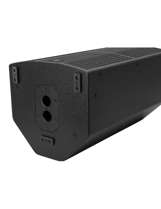 Elle est caractérisée par un boîtier en contreplaqué de bouleau (15 mm), une finition noire texturée, des points de vol (fixation), et une corne rotative pour adapter l’orientation du pavillon (80° × 50°) selon qu’on l’utilise en position verticale ou horizontale.