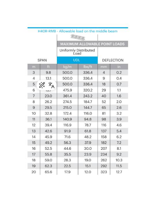 Structure rectangulaire H40, avec Membrure centrale réglable