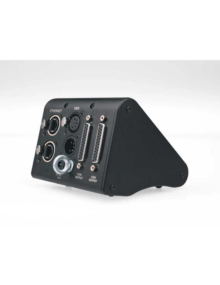 Cette interface robuste comprend un commutateur réseau facilitant la mise en réseau de plusieurs systèmes laser. Elle offre également à l'utilisateur des sorties ETH/ArtNet, DMX et ILDA supplémentaires (répartiteur de signal ILDA intégré).