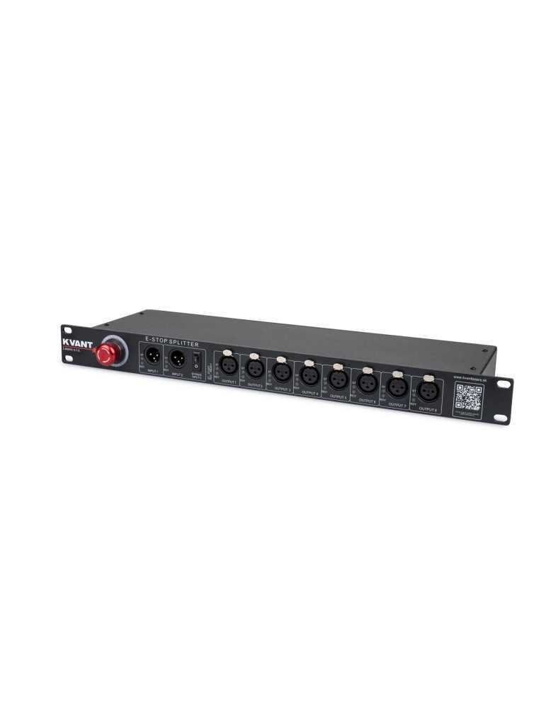 Le répartiteur E-STOP à 8 canaux offre plusieurs options pour distribuer le signal E-STOP à tous les lasers Kvant d'une installation donnée. Le répartiteur distribue le signal de manière parallèle, ce qui permet de connecter un nombre pratiquement illimité de projecteurs laser et de les contrôler simultanément ou par groupes.
