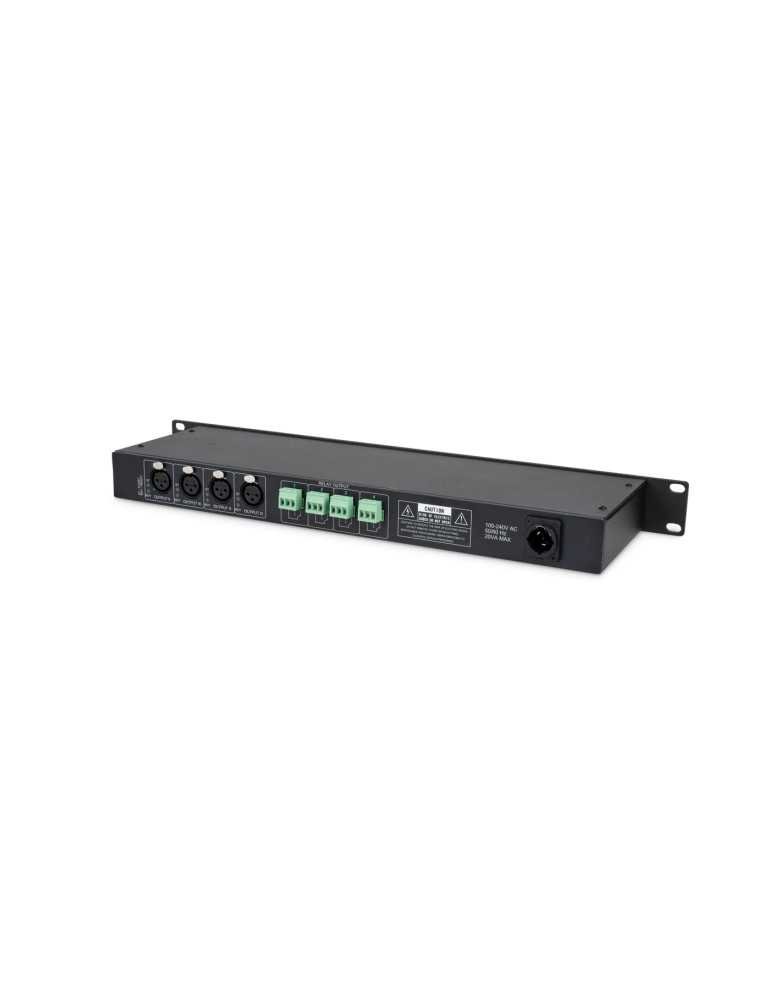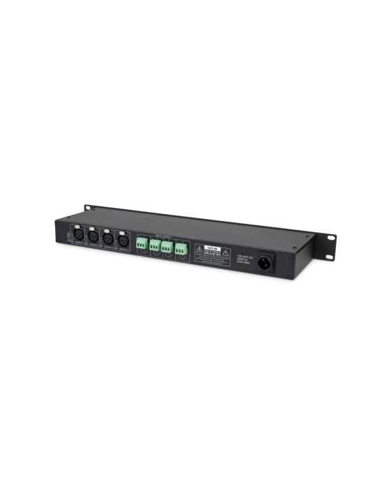 8x [XLR 3 broches], isolation optique, protection ESD et « power cross safe », chaque sortie peut contrôler un nombre illimité de projecteurs laser Kvant.