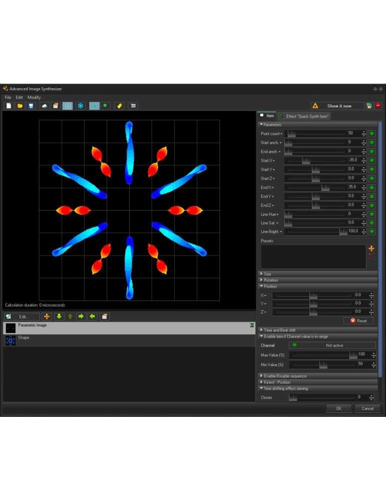 Fonctionnalités de base suffisantes pour créer des shows synchronisés avec audio, avec quelques outils QuickTools.
