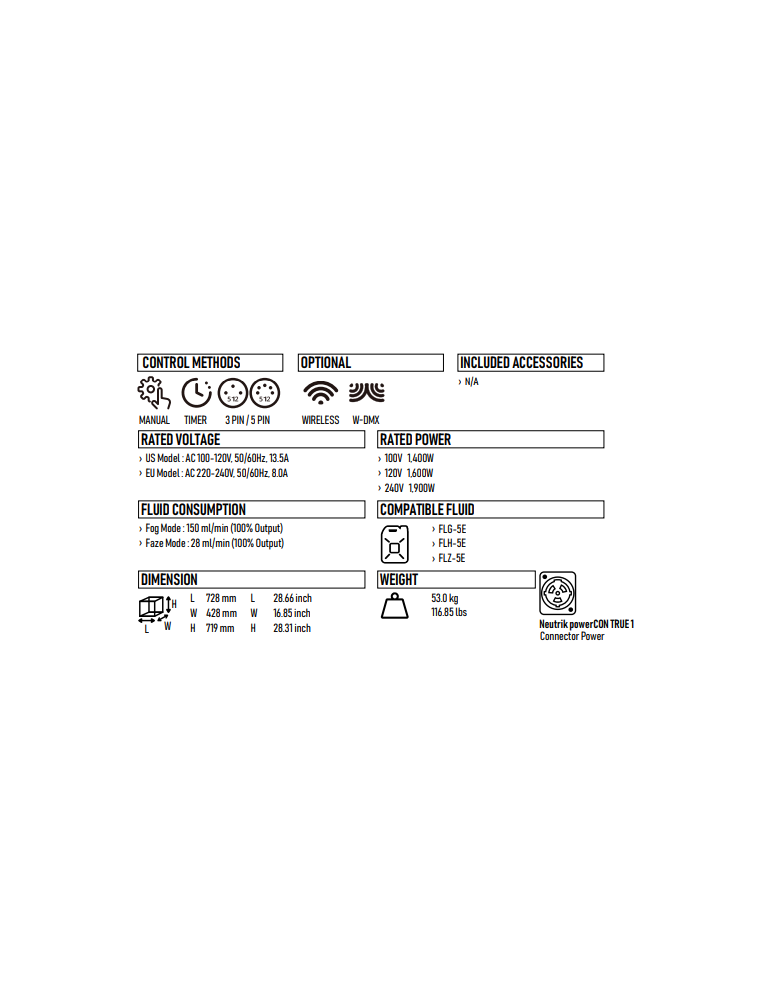 | Fluide compatible | Antari FLG-5E Antari FLH-5E Antari FLZ-5E |