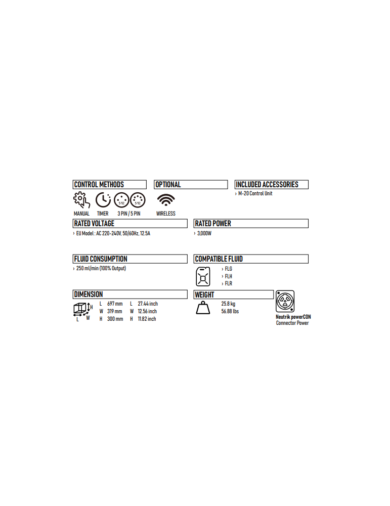| Fluides compatibles | Antari FLG, FLR, FLH |