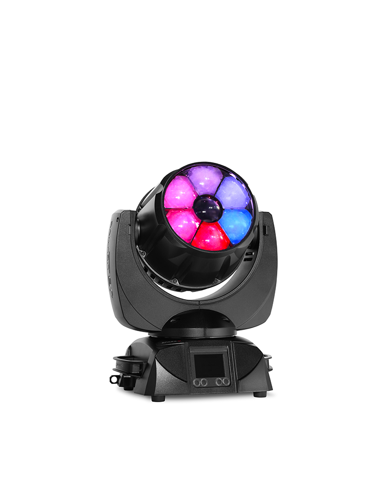 Le SPARX9, avec ses LED OSRAM 7x40W RGBW et son optique nouvellement développée, est un outil polyvalent impressionnant. Les 7 grandes lentilles de sortie permettent d'obtenir un faisceau lumineux très étroit de 2,3° ainsi qu'un éclairage de zone parfaitement homogène jusqu'à 55°. Il succède au SPARX7 ou A7 avec une taille compacte et un poids de seulement 9,8 kg. Le SPARX9 est doté des caractéristiques suivantes, entre autres :