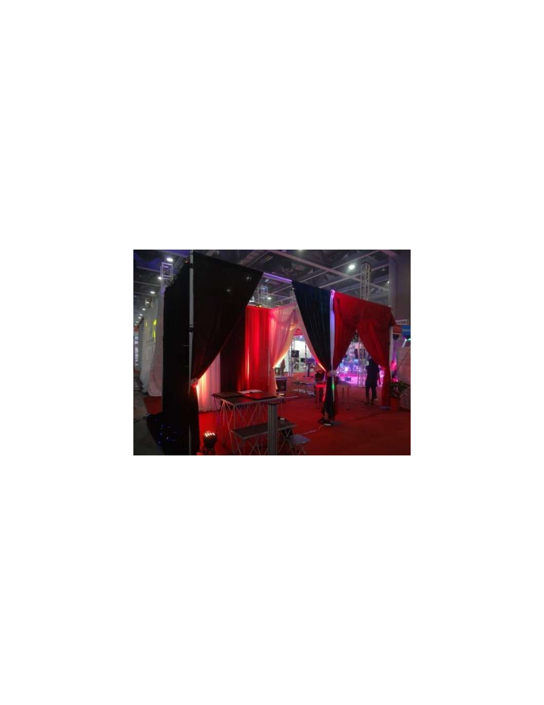 Montant variable de 275 à 485 cm - Le système tube and drape est un concept de pendrillonnage rapide, permettant de transformer rapidement tout espace extrêmement rapidement. Idéal pour la prestation événementielle, les tubes and drapes sont composé de bases, de montant, de traverses et de rideaux.