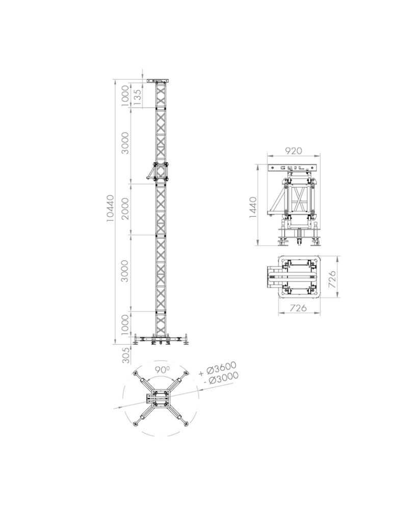 Remarque : Grâce à leur conception modulaire, les tours Ground Support peuvent être configurées avec des fermes de différentes tailles ; consulter le prix pour les configurations spéciales.